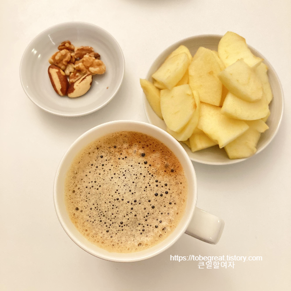 원래는 아몬드, 호두, 브라질 넛 3종 세트로 먹는데 요즘 이상하게 아몬드를 씹는게 싫어서.ㅋㅋㅋ 아몬드를 빼고 브라질 넛을 하나 더 먹었어요.